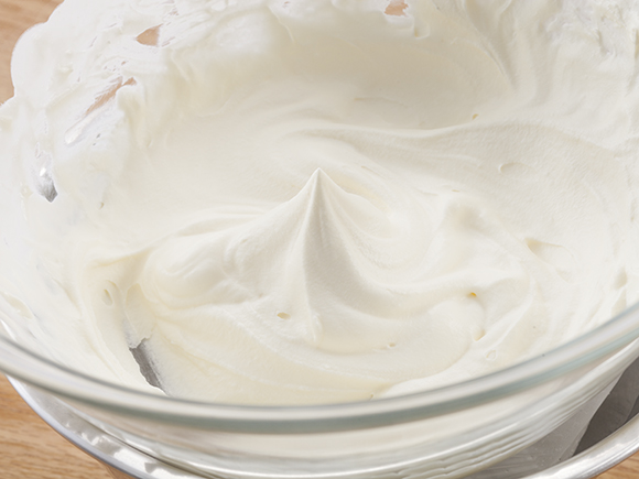 別のボウルに生クリームと残りの砂糖を入れ、泡立て器でツノが立つまで泡立てます。クリームチーズは電子レンジで軽く温めても、柔らかくなります!電子レンジでやってみよう★
