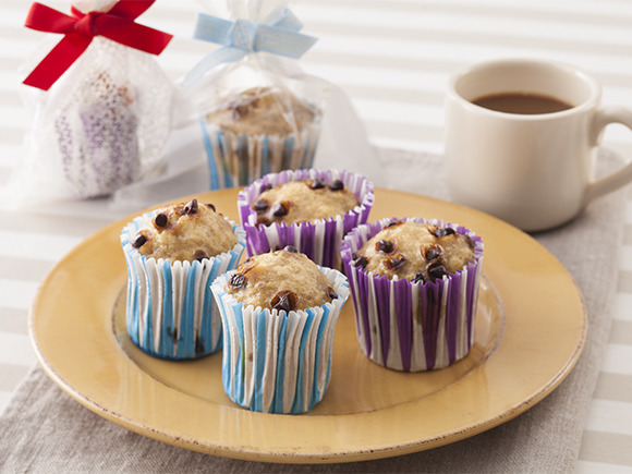 袋の上の方をぎゅっと握って絞り、セロハンテープなどでとめてリボンを結べば、かんたんにラッピングができます。竹串をさして、生地がつかなければ蒸し上がりです。火を使うときは、やけどをしないように注意してくださいね!※9号の紙カップ4個分です。※耐熱プリンカップを使用しております。